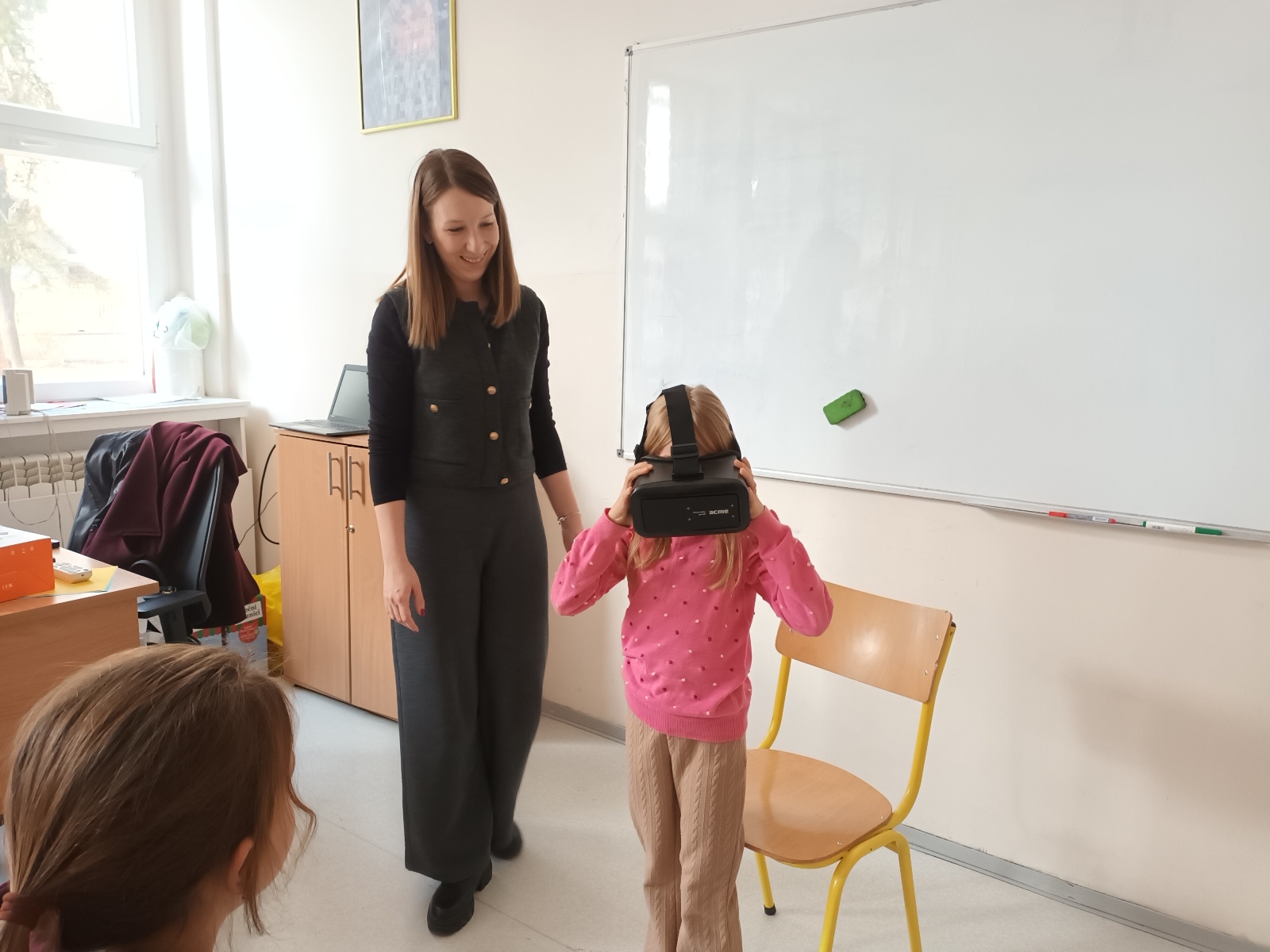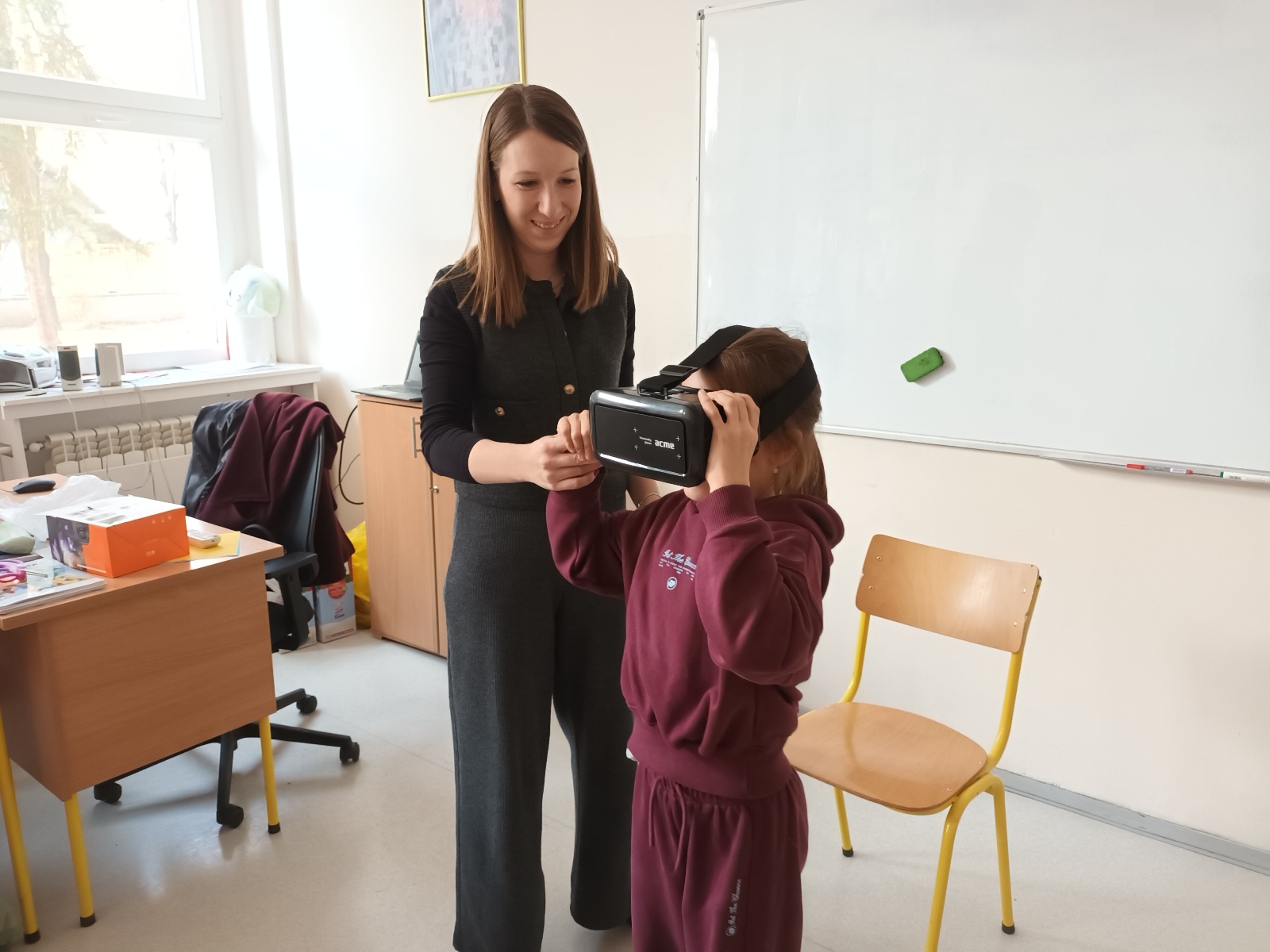 Час у одељењу 1/2 о Сунцу и његовој улози, о томе колико га има у ком годишњем добу, да ли је стидљиво или пече пуном снагом , био је веома занимљив, необичан и иновативан. Наставница, Невена Пантелић, замислила је и одржала час који је био одлично организован, било је промена ритма, тимског рада,лепљења и бојења, али није то све. Пошто је натавница похађала семинар о употреби ВР наочара у настави, одлично је научено применила у пракси. Сви ученици су, на крају часа, имали прилику да пробају наочаре, да ближе погледају у Сунце, да га мало помилују, штипну и проштетају са њим. Изузетан доживљај и за посматрача и за ученике.