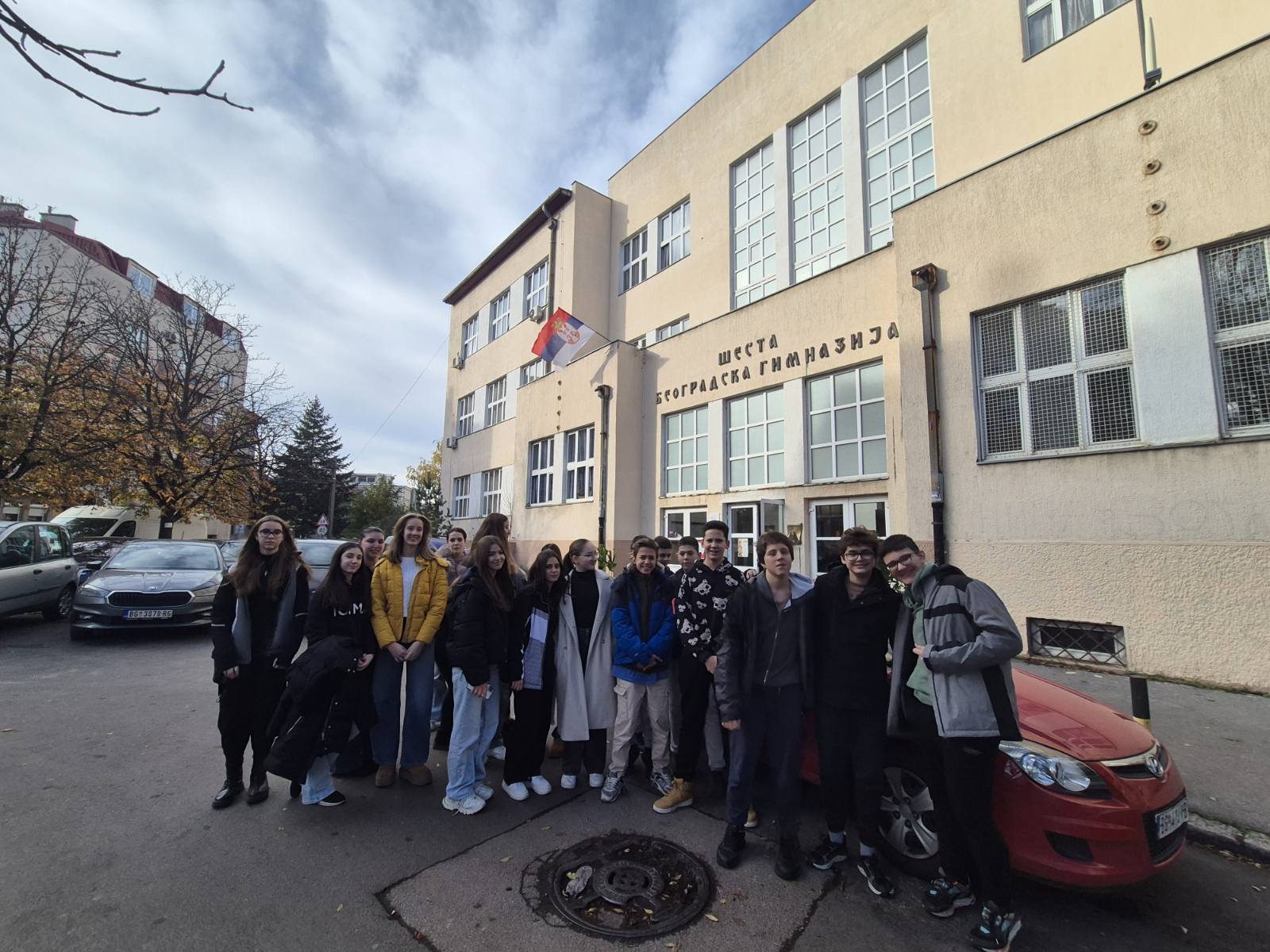 У оквиру манифестације „Новембарски дани Соње Жарковић“, ученици осмог разреда посетили су 24. новембра 2025. године Шесту београдску гимназију у пратњи педагога школе Дијане Манце.