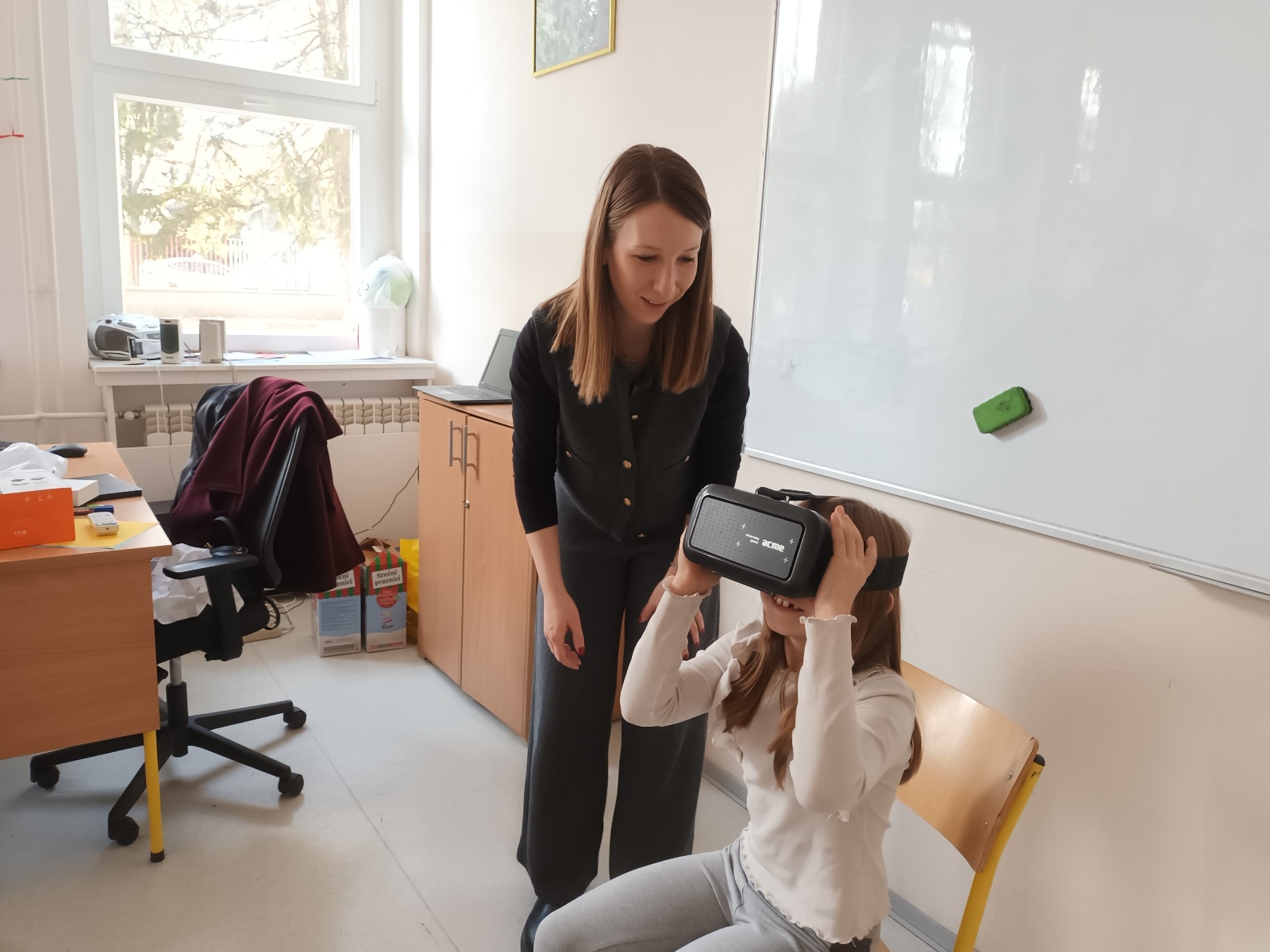 Час у одељењу 1/2 о Сунцу и његовој улози, о томе колико га има у ком годишњем добу, да ли је стидљиво или пече пуном снагом , био је веома занимљив, необичан и иновативан. Наставница, Невена Пантелић, замислила је и одржала час који је био одлично организован, било је промена ритма, тимског рада,лепљења и бојења, али није то све. Пошто је натавница похађала семинар о употреби ВР наочара у настави, одлично је научено применила у пракси. Сви ученици су, на крају часа, имали прилику да пробају наочаре, да ближе погледају у Сунце, да га мало помилују, штипну и проштетају са њим. Изузетан доживљај и за посматрача и за ученике.
