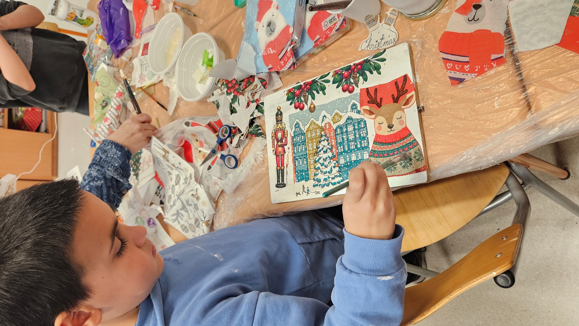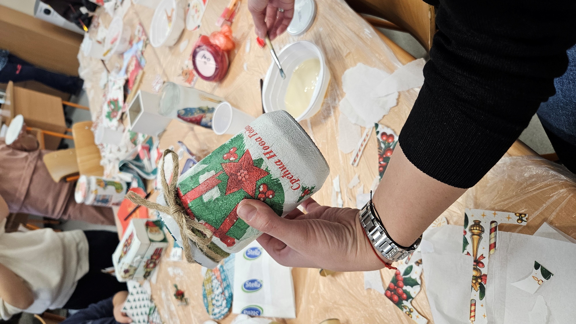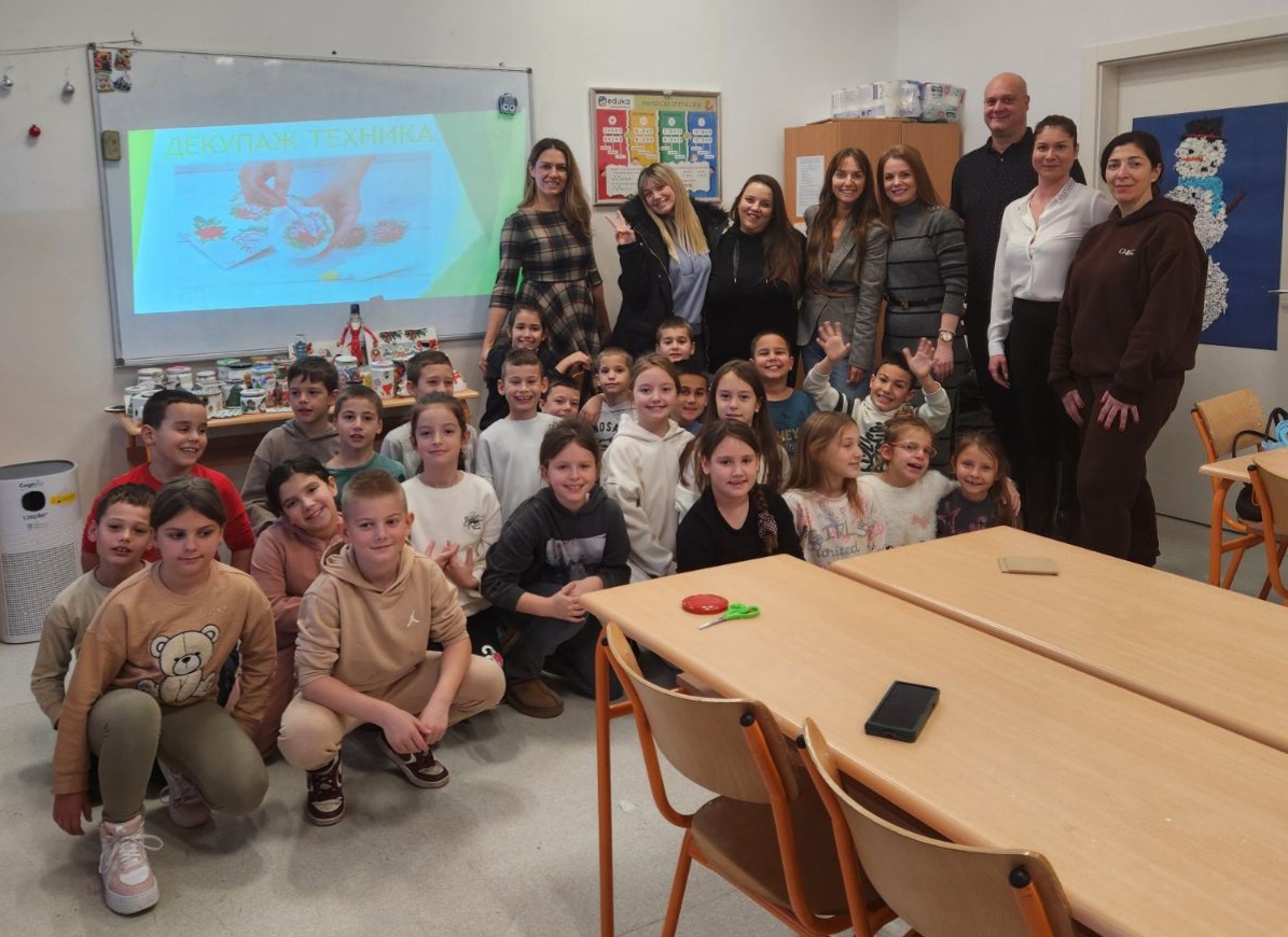 У духу предстојећих празника и жеље да све буде светлуцаво, шарено, украшено, вредне руке наших ученика одељења 2/1 су се опробале у декупаж техници украшавања предмета. На ликовној радионици која је одржана 24. децембра 2025. године, ученици су у друштву својих родитеља, показали креативност и спретност, низале су се идеје и настајала права уметничка дела.