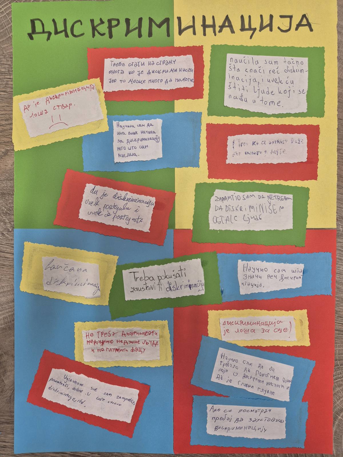 Циљ предавања и радионице био је подизање свести ученика о појму дискриминације, препознавању различитих облика дискриминаторног понашања, као и развијање толеранције, емпатије и међусобног уважавања. Кроз интерактиван рад, разговор и примере из свакодневног живота, ученици су имали прилику да активно учествују у дискусији и изнесу своја запажања и ставове.